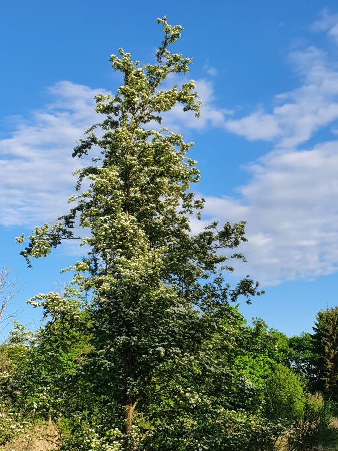 Common hawthorn is the most widespread species. Hawthorn grows in open-forests, hedges, brushes and on grasslands. The thorns provide good protection against game bites, which is why you often see other trees growing up in the middle of a hawthorn shrub.